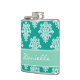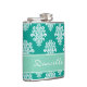 A feminine floral damask pattern in teal and white embellished with an aqua ribbon strip. Personalize with your name and monogram. This item makes a nice gift for bridesmaids, birthdays and more.