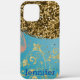 Cute, fun, girly bright teal glitter effect PRINTED design. You can personalize with your name. A stylish, fashion trendy, chic design for her.