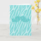 GIRLY TEAL GLITTER MUSTACHE ZEBRA STRIPES CARD