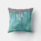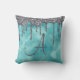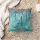 Girly Teal Silver Sparkle Glitter Drip Monogram Throw Pillow