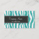 Girly Teal Zebra Print Business Card