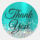 Girly Turquoise Ombre Foil Holo Glitter Thank You Classic Round Sticker