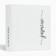Elegant Modern Clean Minimalist Monogram Name Signature Script White Custom Personalized 3 ring Binder. This design featuring your first name in a pretty hand lettered style swash tail font signature typography (or calligraphy). Black font on white background. These are easy to customize it. Great stylish feminine housewarming gift, also for birthday, wedding, sweet 16 birthday party, bridal shower, baby shower, for graduation party and It’s for the girl who loves simple modern things.