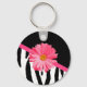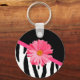 Girly Zebra Pattern Cute Pink Daisy With Name Keychain
