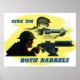 This vintage World War Two poster features a factory worker operating a rivet gun, next to an American soldier, operating a machine gun. It declares, "Give 'Em Both Barrels". Celebrate American and WW2 History with this digitally restored vintage war poster product from The War Is Hell Store.