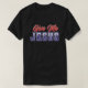 This black t shirt features a bold graphic design with the text "Give Me JESUS" in a stylized font. The words "Give Me" are in red and white, while "JESUS" is in blue and white.