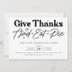 Having your Give Thanks Eat Pie Thanksgiving Invitation match the theme of your party is a great detail that your guests will appreciate. The thoughtfulness of a consistent party theme is often appreciated and can show your guests that you can host a cohesive event.