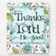 This hand-lettered original design by artist Karla Dornacher features fanciful flowers in aqua blue and red that are both elegant and whimsical. This floral pattern borders one of the Bible's most quoted verses... "Give thanks to the Lord for He is good" because He is... and we all have so much to be thankful for! This would make a great gift for the women in your Bible Study, the members of your Retreat Team, or any other woman who loves the Lord and loves to Give Thanks!!
