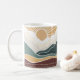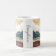 A Boho-style sunrise landscape in vibrant, earthy colors of gold, green & burgundy. Along the side of the mug is a place to add a name for personalization. Inspired by the bible verse from Psalm 136:7-8, "7Give thanks to him who made the heavenly lights—His faithful love endures forever. 8 the sun to rule the day, His faithful love endures forever."