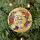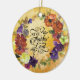 Thanksgiving personalized ceramic ornament depicts beautiful rustic autumn watercolor floral purple, burnt orange, blue and yellow flowers and greenery. If features Bible Verse Psalm 136:1, "Give thanks to the LORD, for he is good. His love endures forever." The back name, date and Bible Verse can be customized to your choice.