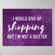 Shopping problem? No problem! You aren’t a quitter. This funny design says “I would give up shopping, but I’m not a quitter.” Perfect for someone who enjoys shopping, is a shopaholic or addicted to shopping.