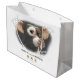 So very happy with the quality of this bag! The thickness of the paper along with the glossy finish I just love it! Can’t wait to give our pup his gifts in this awesome custom gift bag! The printing came out amazing! The black crisp clear printing on the white bag looks amazing! Very pleased with this purchase!