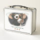 This is a standard metal lunchbox that appears to work just fine. We designed this box ourselves with an uploaded photo and custom text on the front and back. It looks absolutely beautiful except the front of the lunchbox is not centered like it shows in the photo. The print borders don't align with the inset flat part of the box where the preview photo online showed it perfectly centered in there. The back looks nice and centered though.