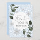 ❄️Express gratitude with a frosty flair using this Glacier Leopard thank-you card. Featuring icy blue leopard spots, silver snowflakes, and elegant eucalyptus accents, it’s a stylish way to say “Thank YOU Snow Much” during the winter season.