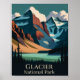 With a simple yet striking aesthetic, this poster captures the essence of Glacier National Park's serene wilderness. The intricate details and vibrant colors showcase the park's stunning mountains, pristine lakes, and vast expanses of untouched forests.