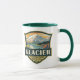 Glacier vector artwork design. The park is a wilderness area in Montana's Rocky Mountains, with glacier-carved peaks and valleys running to the Canadian border.