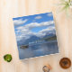 Glacier National Park photography wedding binder with breathtaking, heaven like picture of lake, mountain, boat, blue sky and white clouds.