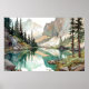 Glacier National Park Watercolor Painting Art Print, Bullhead Lake via Swiftcurrent Pass Trail Poster.