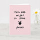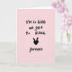 This card features a soft pastel pink background with large, hand-drawn black lettering centered on the front. The message reads “I’M SO GLAD we get to BANG forever,” with “BANG” in all caps for extra emphasis and a cheeky, flirty edge that feels like an inside joke between two close people. The words are stacked in the middle, with the smaller phrases tucked above and below the larger emphasized word, creating a casual note-like layout. Beneath the text sits a solid black silhouette of a heart topped with two long upright oval shapes, resembling bunny ears 🐰. The strong black-on-pink contrast keeps everything easy to read while still looking soft and romantic, like a blush-toned backdrop to a daring confession. A tiny pause of empty space around the lettering gives the message room to breathe, making it feel direct and intimate rather than crowded. The only graphic element is the heart-and-ears icon centered under the line of text, like a simple stamp 🐇.