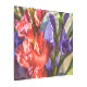Gladiolus flowers in full bloom, with their vibrant red and purple petals and intricate, ruffled textures.