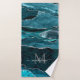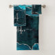 Glam Agate Geode Teal Green Silver Monogram Script Bath Towel Set