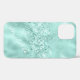 This glamorous phone case has a background of faux aqua blue foil. Across the middle is a generous sprinkling of dark and light aqua blue confetti, along with silvery white confetti. Your name is in white script diagonally across the bottom. Pretty!
