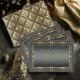 This elegant wedding Save the Date card is part of a sophisticated art deco wedding suite, featuring luxurious frames and intricate, shimmering gold details. The classic designs exude a glamorous vintage charm, with a color palette of black, glowing gold, and warm grey tones. The ornate pattern on the reverse adds a touch of sophistication to this timeless card. Add your event details easily using the provided template. Search ID1033 to see all the products in this wedding suite.