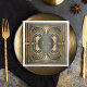 This elegant paper napkin is part of a sophisticated art deco wedding suite, featuring luxurious frames and intricate, shimmering gold details. The classic designs exude a glamorous vintage charm, with a color palette of black, glowing gold, and warm grey tones. The ornate details add a touch of sophistication to this timeless design. Add your initials and wedding date easily using the provided template. Search ID1033 to see other wedding products in the design set.