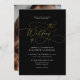 Glam Black Gold Script Calligraphy Photo Wedding Invitation