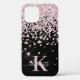 Glam Black Rose Gold Diamond Confetti Monogrammed Case-Mate iPhone Case