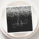 Glam Black Silver Glitter Elegant Monogram Napkins. Easily personalize this trendy chic napkins design featuring elegant silver sparkling glitter on a black background. The design features your handwritten script monogram with pretty swirls and your name.