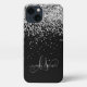 Glam Black Silver Glitter Monogram Name iPhone Case