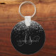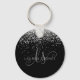 Glam Black Silver Glitter Elegant Monogram Keychain, Easily personalize this trendy chic keychain design featuring elegant silver sparkling glitter on a black background. The design features your handwritten script monogram with pretty swirls and your name.