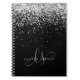 Glam Black Silver Glitter Monogram Name Notebook