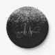 Glam Black Silver Glitter Elegant Monogram Paper Plate. Easily personalize this trendy chic paper plate design featuring elegant silver sparkling glitter on a black background. The design features your handwritten script monogram with pretty swirls and your name.