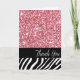 Glam Bling Glitter Zebra Thank You | pink Card