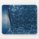 Glam Bling Personalized Glitter Calligraphy Blue Mouse Pad