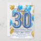 Glam Blue Gold Balloons 30th Wedding Anniversary Invitation
