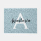 Girly and glam light blue silver glitter sparkles monogram name and initial doormat. Personalize with your custom name in an elegant black script and your monogram initial in white. You can even change the text color and font style and size using the customize option!