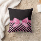 Glam Bubble Pink Bow-Pink Black-Candy Stripes Throw Pillow