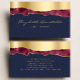This elegant modern business card features a stylish top edge graphic of burgundy red and gold faux foil. Personalize it with your name in gold-colored handwriting-style script and business information in sans serif font on a navy blue background The design is repeated on the reverse, with space for your contact information.