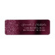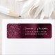 The left-hand edge of this elegant modern wedding invitation return address label features a burgundy faux glitter border. The customizable text combines white handwriting and copperplate fonts on a burgundy faux brushed metal background.