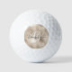 These elegant personalized golf balls feature a monogram and first name in modern charcoal gray and white script on a champagne gold faux glitter and foil background.