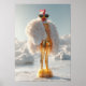 A stylish chicken dressed in a glamorous white fur coat, gold metallic pants, and fluffy boots, accessorized with chunky gold chains and sunglasses, posing confidently on a snowy surface.