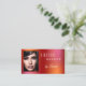 Business card featuring 4 of your own photos in a portfolio on a colorful red orange background design with subtle glitter sparkles. Beautiful for a makeup artist.