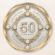 Glam Diamond & Gold Frame 50th Wedding Anniversary Round Paper Coaster