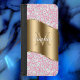 Personalize large gold monogram and name in white script on gold wave with diamonds on pink.