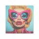 A striking, high-fashion portrait of a glamorous diva with voluminous blonde hair, oversized hot pink cat-eye sunglasses, bold red lips, and electric blue eyeshadow. The look is fierce, retro, and unapologetically fabulous — a pop-art dream in vivid color.