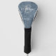 Glam Dusty Blue Stardust Glitter Script Monogram Golf Head Cover