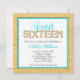 Glam Faux Glitter Gold Teal Sweet 16 Invitation